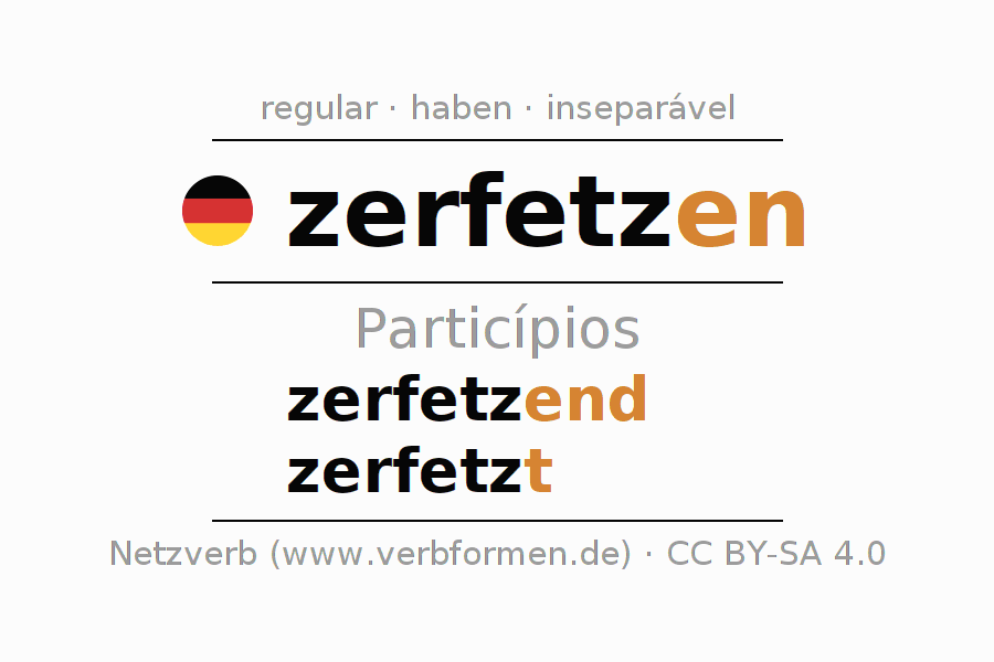 O verbo zerfetzen é totalmente conjugado em todas as pessoas e números no Particípio Presente Perfeito