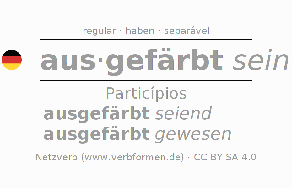 O verbo ausfärben (hat) é totalmente conjugado em todas as pessoas e números no Particípio Presente Perfeito