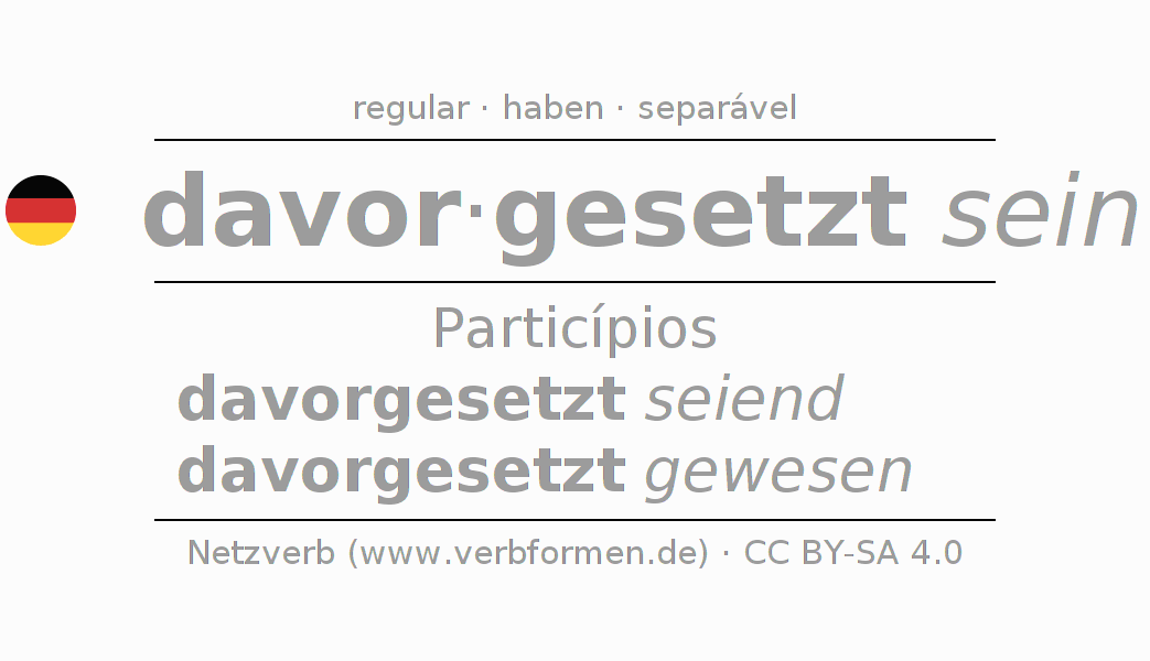 O verbo davorsetzen é totalmente conjugado em todas as pessoas e números no Particípio Presente Perfeito