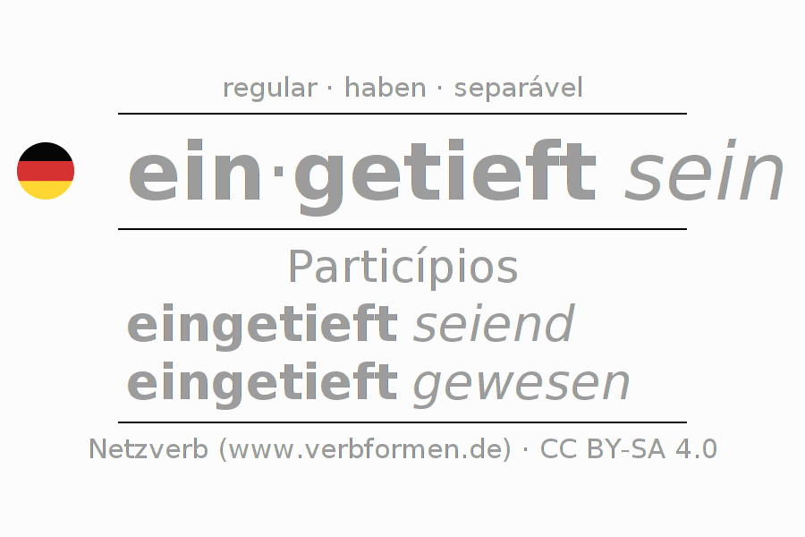 O verbo eintiefen é totalmente conjugado em todas as pessoas e números no Particípio Presente Perfeito