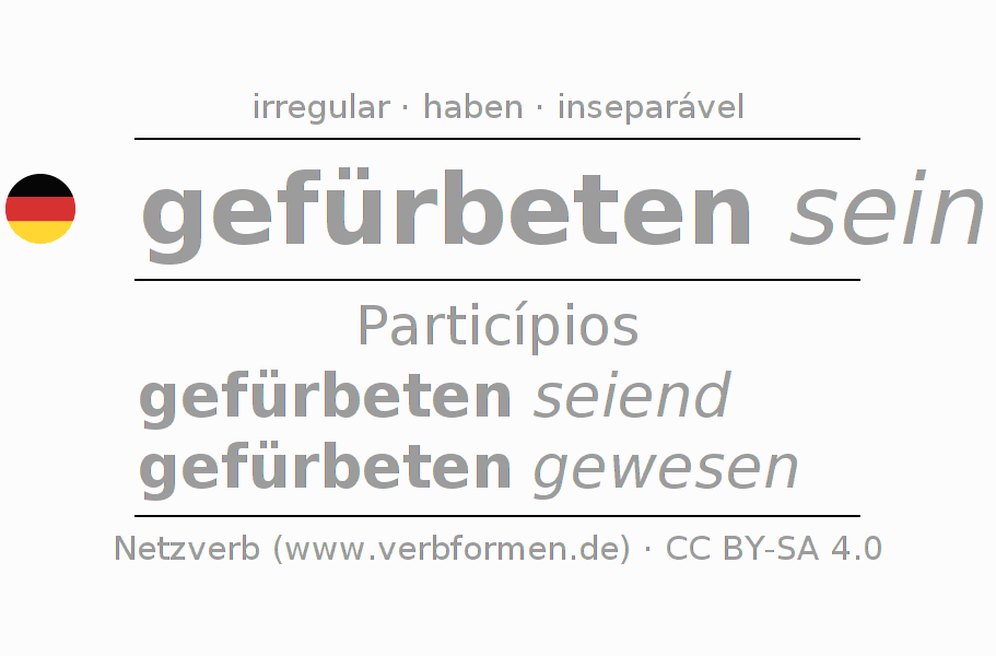 A conjugação do verbo fürbitten no Estado passivo Particípio Presente Perfeito palavra discurso é: gefürbeten seiend, gefürbeten gewesen.A formação dessas formas segue determinadas regras gramaticais. Os requisitos para a conjugação do verbo como forma verbal simples no fürbitten do Particípio. Comentários ☆