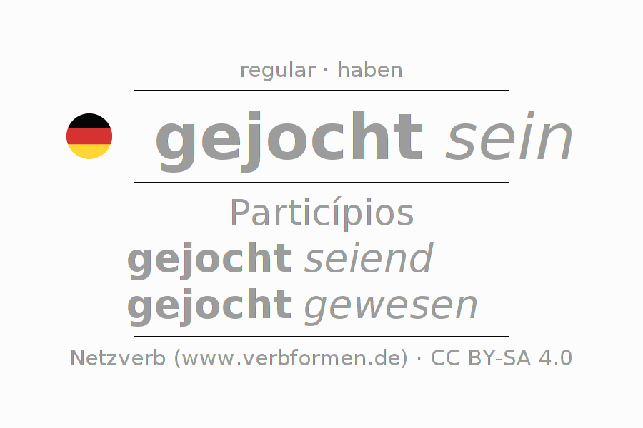 A conjugação do verbo jochen no Estado passivo Particípio Presente Perfeito palavra discurso é: gejocht seiend, gejocht gewesen.A formação dessas formas segue determinadas regras gramaticais. Os requisitos para a conjugação do verbo como forma verbal simples no jochen do Particípio. Comentários ☆