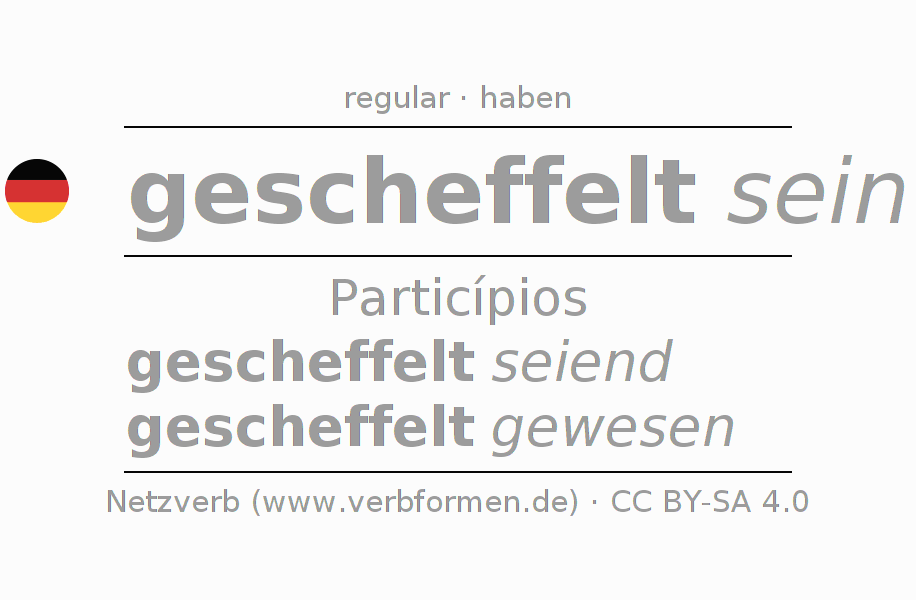 A conjugação do verbo scheffeln no Estado passivo Particípio Presente Perfeito palavra discurso é: gescheffelt seiend, gescheffelt gewesen.A formação dessas formas segue determinadas regras gramaticais. Os requisitos para a conjugação do verbo como forma verbal simples no scheffeln do Particípio. Comentários ☆