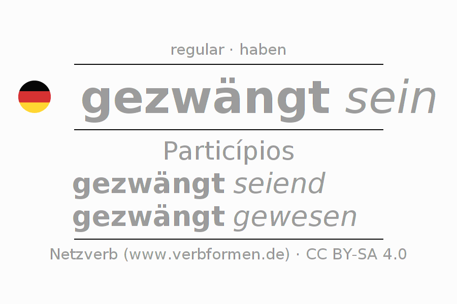 A conjugação do verbo zwängen no Estado passivo Particípio Presente Perfeito palavra discurso é: gezwängt seiend, gezwängt gewesen.A formação dessas formas segue determinadas regras gramaticais. Os requisitos para a conjugação do verbo como forma verbal simples no zwängen do Particípio. Comentários ☆