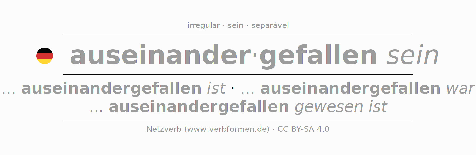 O verbo auseinanderfallen é totalmente conjugado em todas as pessoas e números no Particípio Presente Perfeito