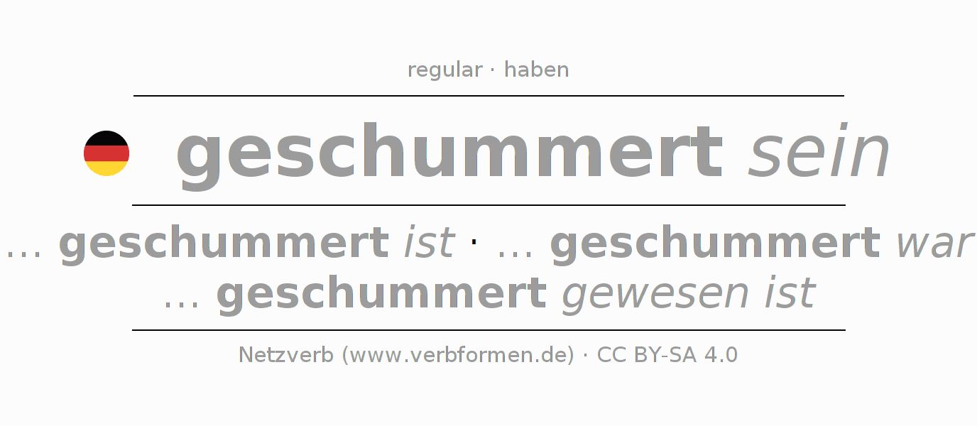 O verbo schummern é totalmente conjugado em todas as pessoas e números no Particípio Presente Perfeito