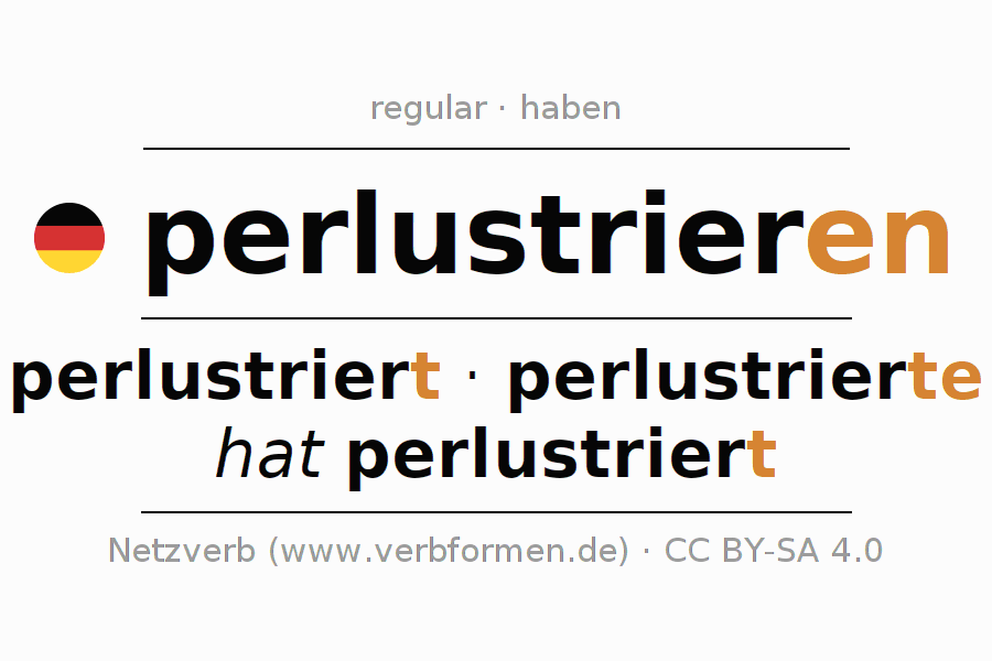 A conjugação do verbo perlustrieren (inspecionar, revistar) é regular. As formas mais comuns são perlustriert, perlustrierte e hat perlustriert. O verbo auxilar para perlustrieren é "haben".
