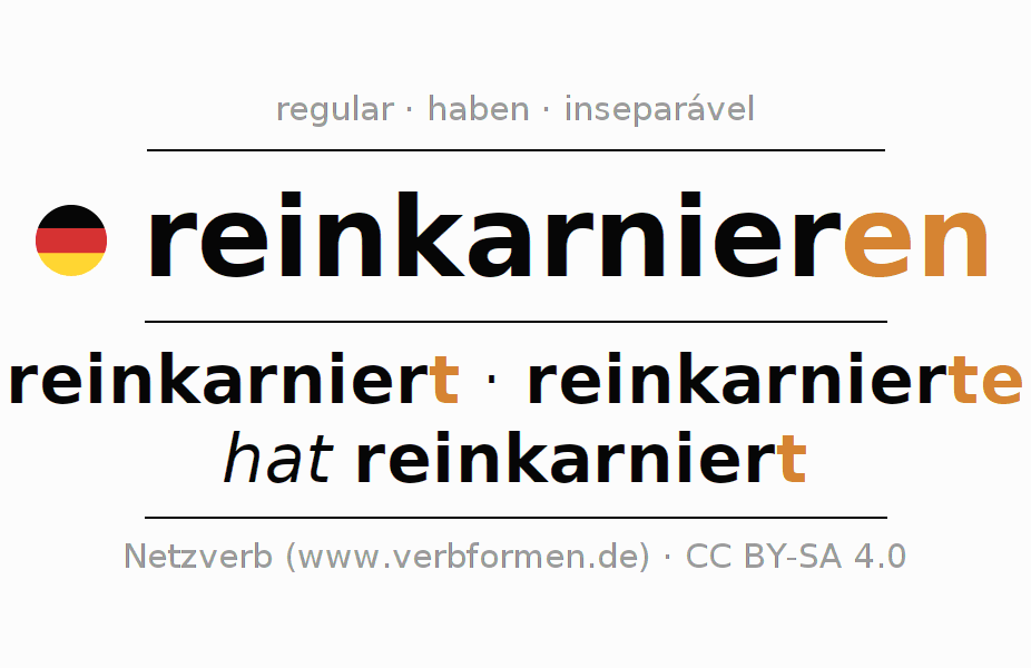 Conjugação simples no presente, pretérito, imperativo e conjuntivo do verbo reinkarnieren