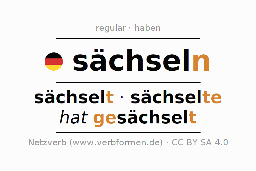 Conjugação simples no presente, pretérito, imperativo e conjuntivo do verbo sächseln