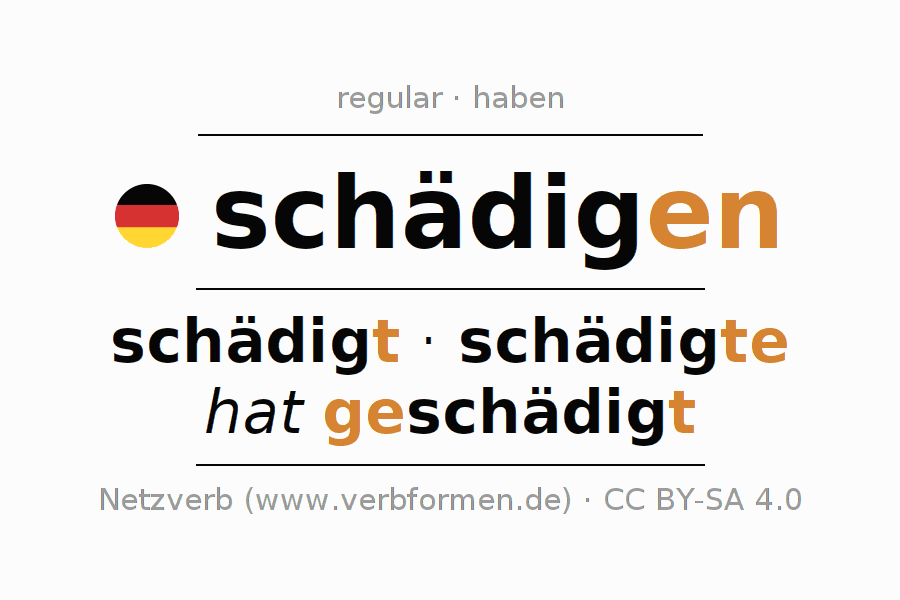 Conjugação simples no presente, pretérito, imperativo e conjuntivo do verbo schädigen