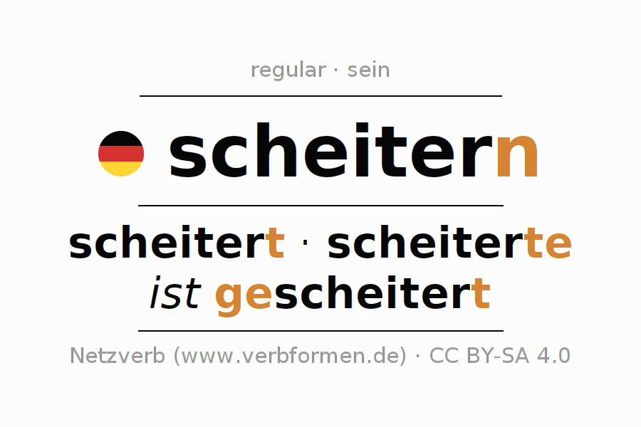 A conjugação do verbo scheitern (fracassar, falhar) é regular. As formas mais comuns são scheitert, scheiterte e ist gescheitert. O verbo auxilar para scheitern é "sein".