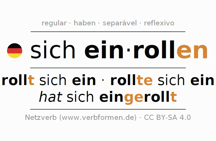 Conjugação simples no presente, pretérito, imperativo e conjuntivo do verbo sich einrollen (hat)