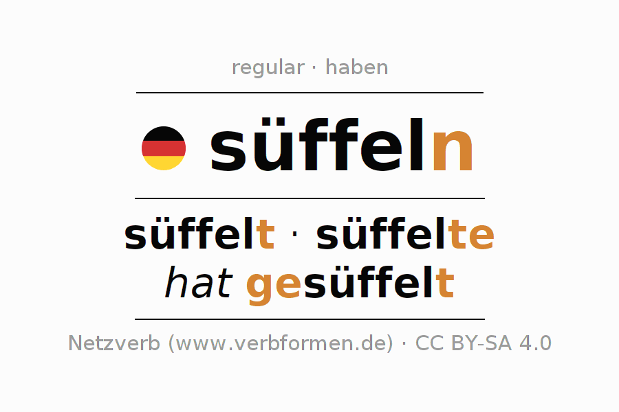 Conjugação simples no presente, pretérito, imperativo e conjuntivo do verbo süffeln