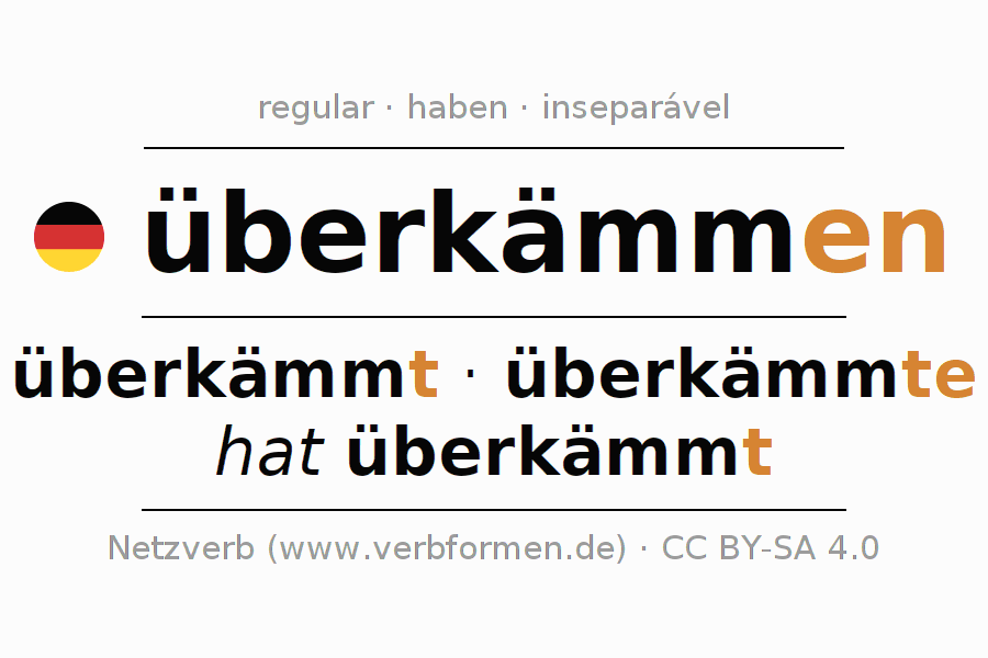 A conjugação do verbo überkämmen (pentear rapidamente) é regular. As formas mais comuns são überkämmt, überkämmte e hat überkämmt. O verbo auxilar para überkämmen é "haben".