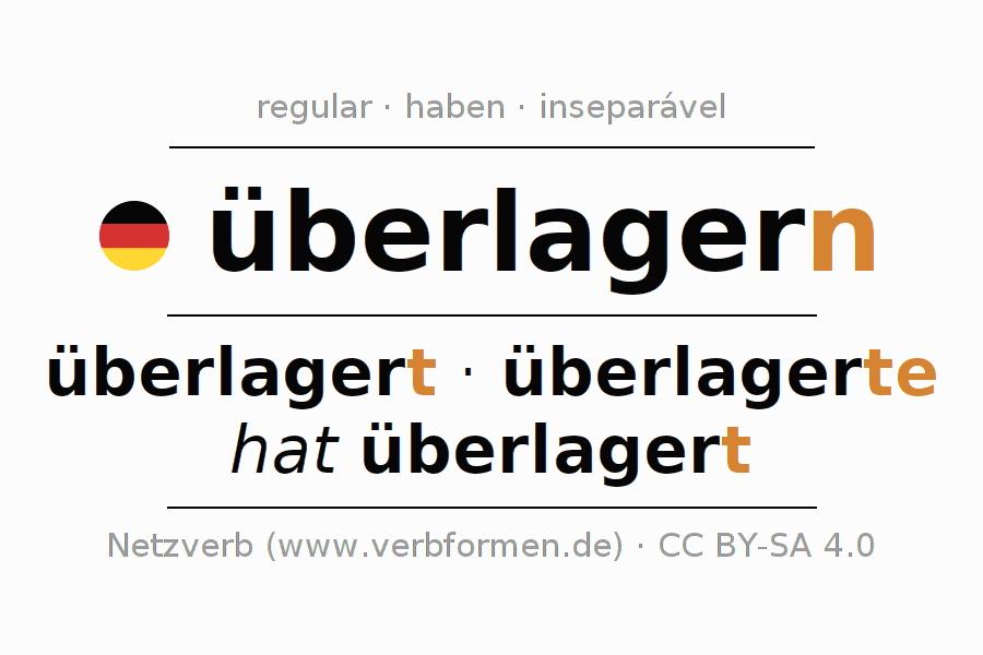 A conjugação do verbo überlagern (sobrepor, sobreposição) é regular. As formas mais comuns são überlagert, überlagerte e hat überlagert. O verbo auxilar para überlagern é "haben".