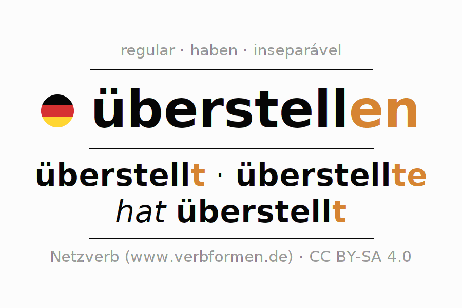 A conjugação do verbo überstellen (entregar, mudar de poleiro) é regular. As formas mais comuns são überstellt, überstellte e hat überstellt. O verbo auxilar para überstellen é "haben".