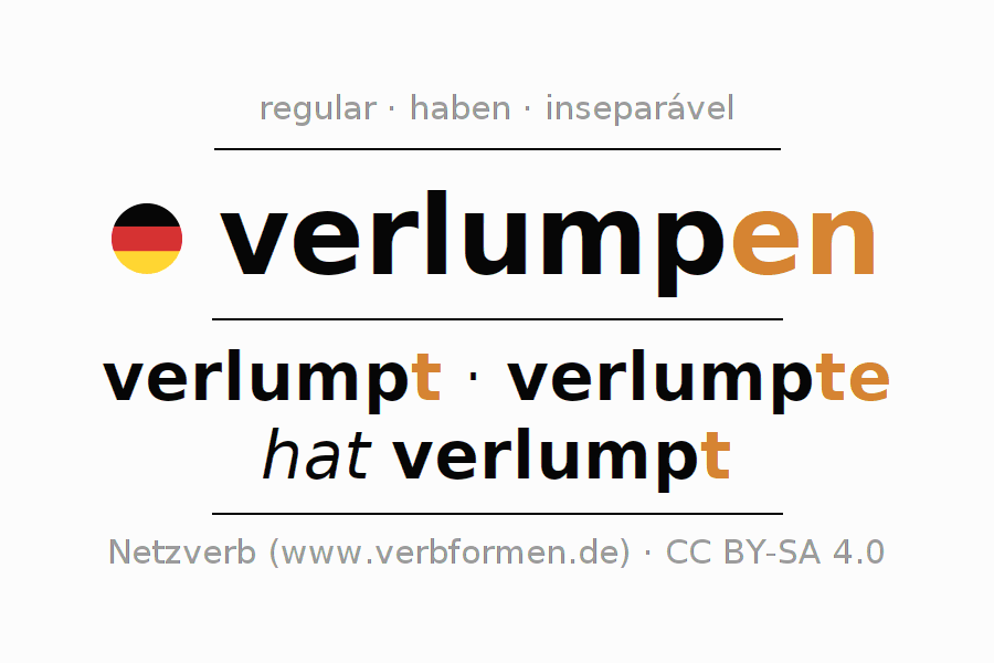 Conjugação simples no presente, pretérito, imperativo e conjuntivo do verbo verlumpen (hat)