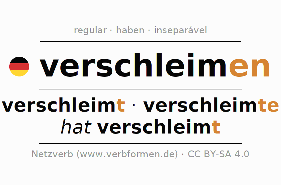 Conjugação simples no presente, pretérito, imperativo e conjuntivo do verbo verschleimen