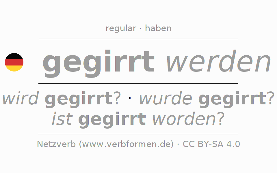 A conjugação do verbo girren (arrulhar, flertar) é regular. As formas mais comuns são wird gegirrt?, wurde gegirrt? e ist gegirrt worden?. O verbo auxilar para girren é "haben".