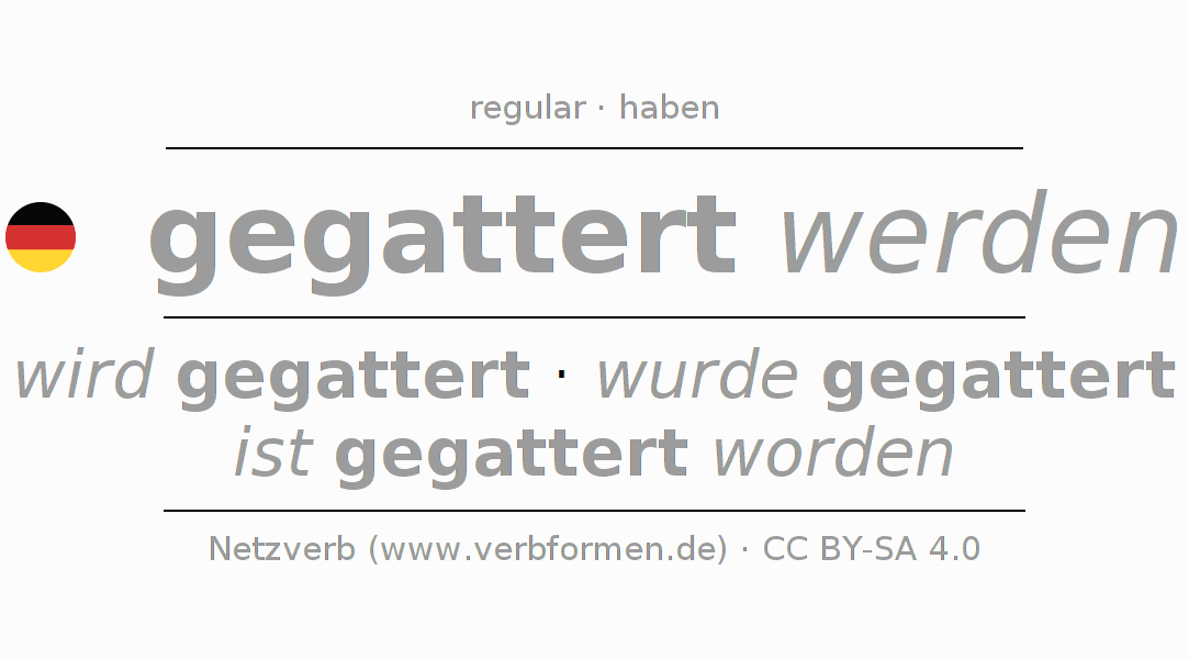 A flexão ocorre em Voz Passiva e é usada como Oração principal. Para melhor compreensão estão disponíveis incontáveis. Exemplos do verbo gattern . Para a prática e consolidação do estudo