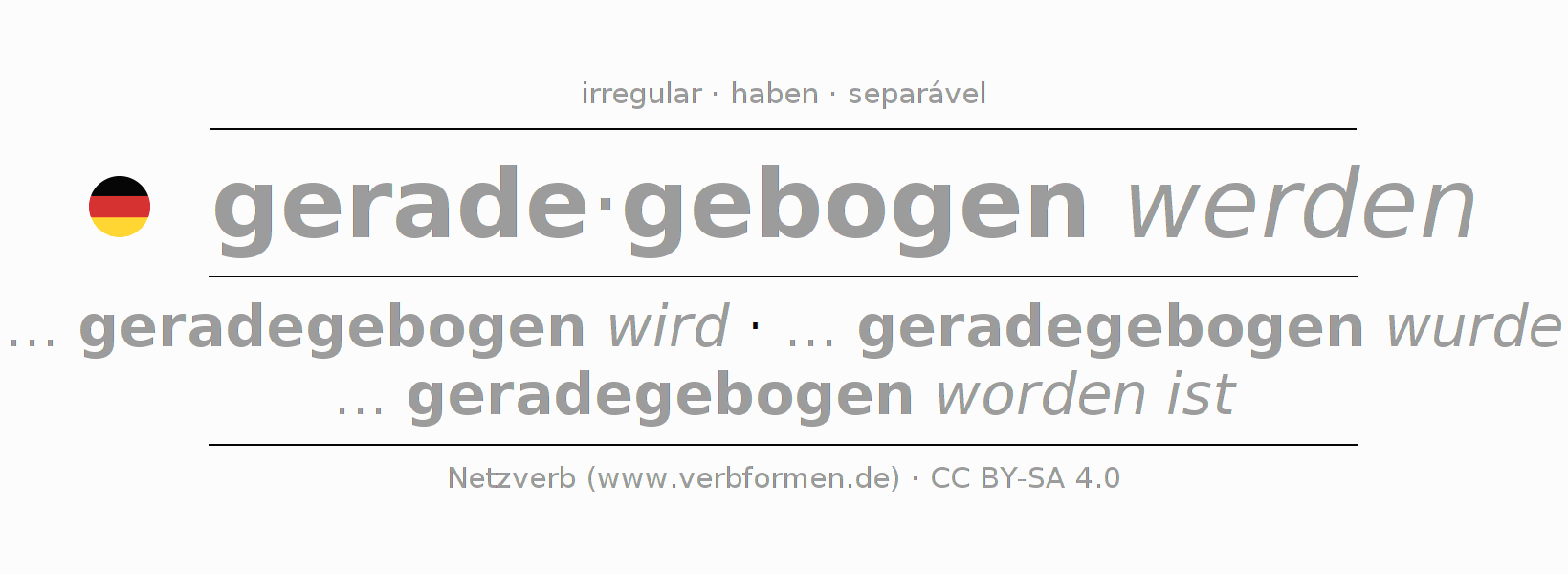 A conjugação do verbo geradebiegen (ajustar, corrigir) é irregular. As formas mais comuns são ... geradegebogen wird, ... geradegebogen wurde e ... geradegebogen worden ist. A apofonia é feita com a vogal do radical ie