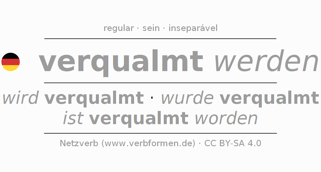A conjugação do verbo verqualmen (dissipar) é regular. As formas mais comuns são wird verqualmt, wurde verqualmt e ist verqualmt worden. O verbo auxilar para verqualmen é "sein". No entanto, há formas verbais com o verbo auxiliar " haben".