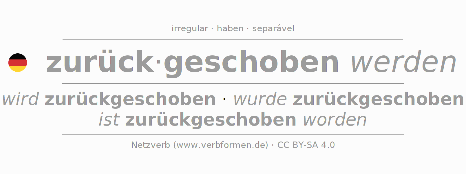 A conjugação do verbo zurückschieben (afastar, empurrar de volta) é irregular. As formas mais comuns são wird zurückgeschoben, wurde zurückgeschoben e ist zurückgeschoben worden. A apofonia é feita com a vogal do radical ie