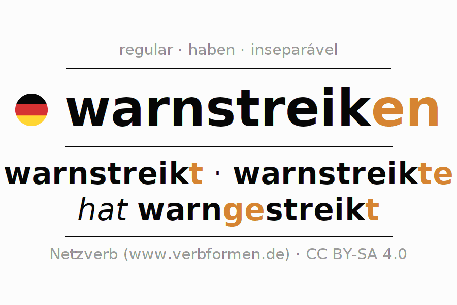 A conjugação do verbo warnstreiken (greve de advertência) é regular. As formas mais comuns são warnstreikt, warnstreikte e hat warngestreikt. O verbo auxilar para warnstreiken é "haben".