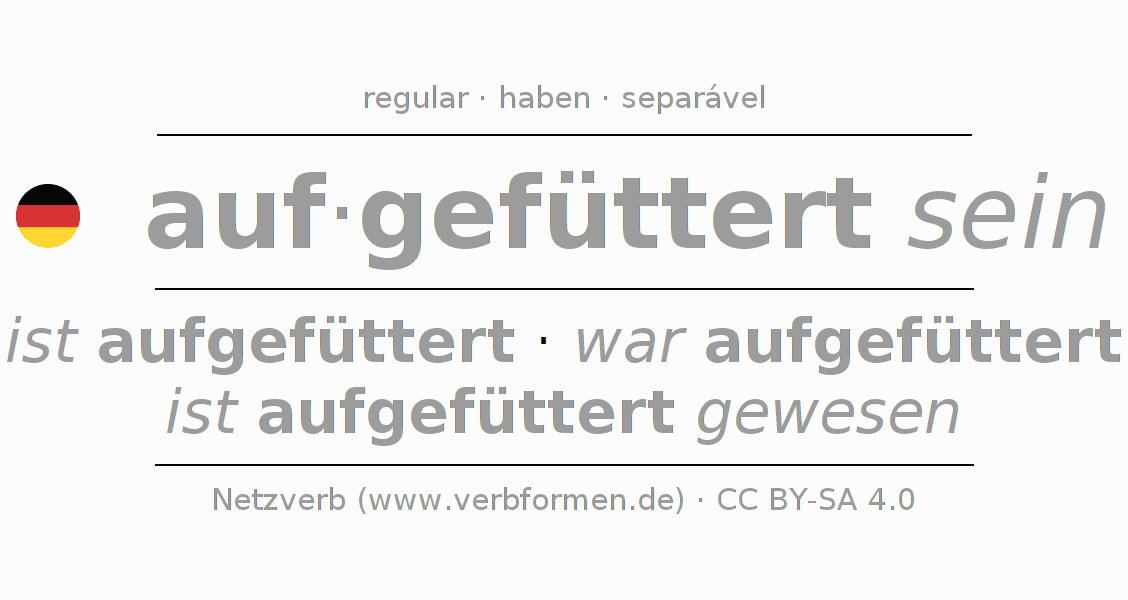A conjugação do verbo auffüttern (alimentar, engordar) é regular. As formas mais comuns são ist aufgefüttert, war aufgefüttert e ist aufgefüttert gewesen. O verbo auxilar para auffüttern é "haben".