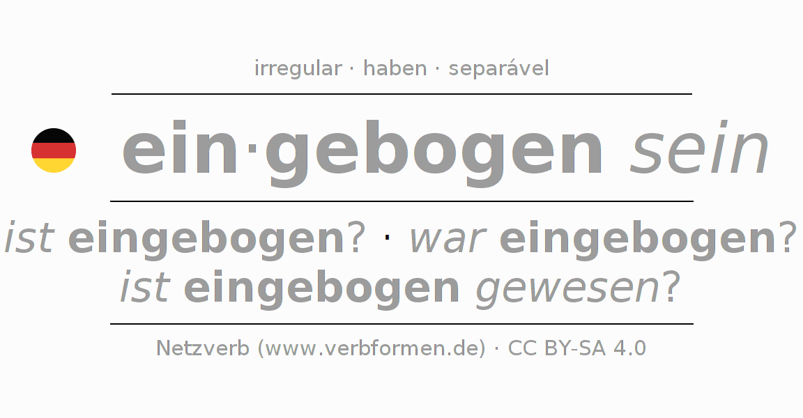 A conjugação do verbo einbiegen (curvar, dobrar) é irregular. As formas mais comuns são ist eingebogen?, war eingebogen? e ist eingebogen gewesen?. A apofonia é feita com a vogal do radical ie