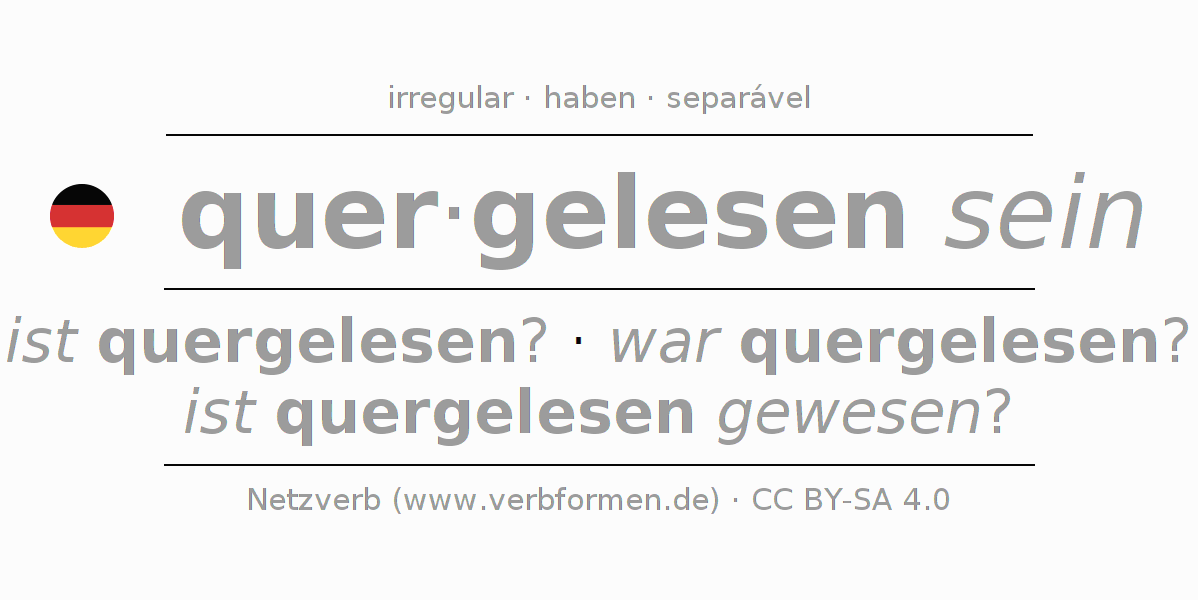 A conjugação do verbo querlesen (ler por cima, escanear) é irregular. As formas mais comuns são ist quergelesen?, war quergelesen? e ist quergelesen gewesen?. A apofonia é feita com a vogal do radical e