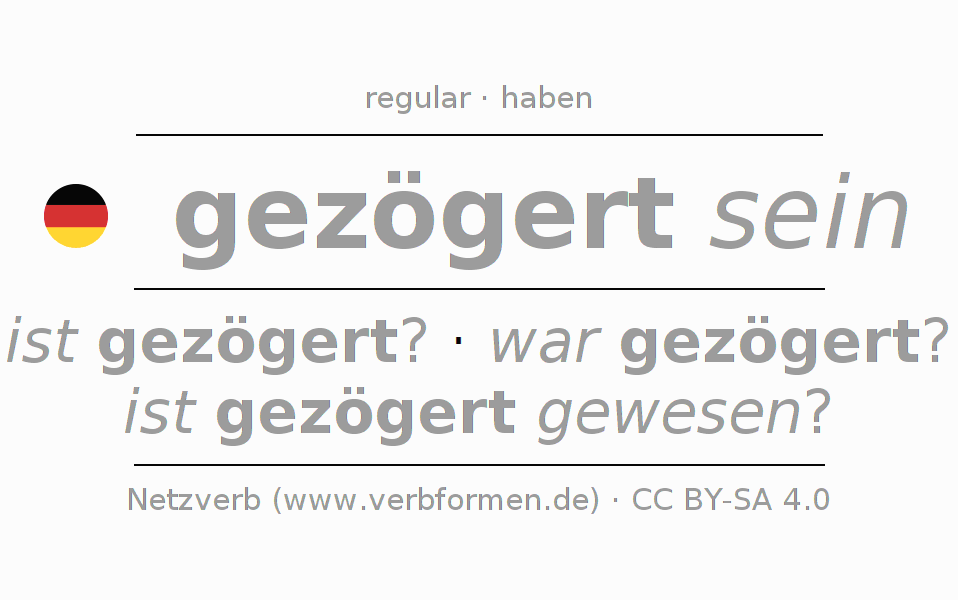 A conjugação do verbo zögern (hesitar, adiar) é regular. As formas mais comuns são ist gezögert?, war gezögert? e ist gezögert gewesen?. O verbo auxilar para zögern é "haben".