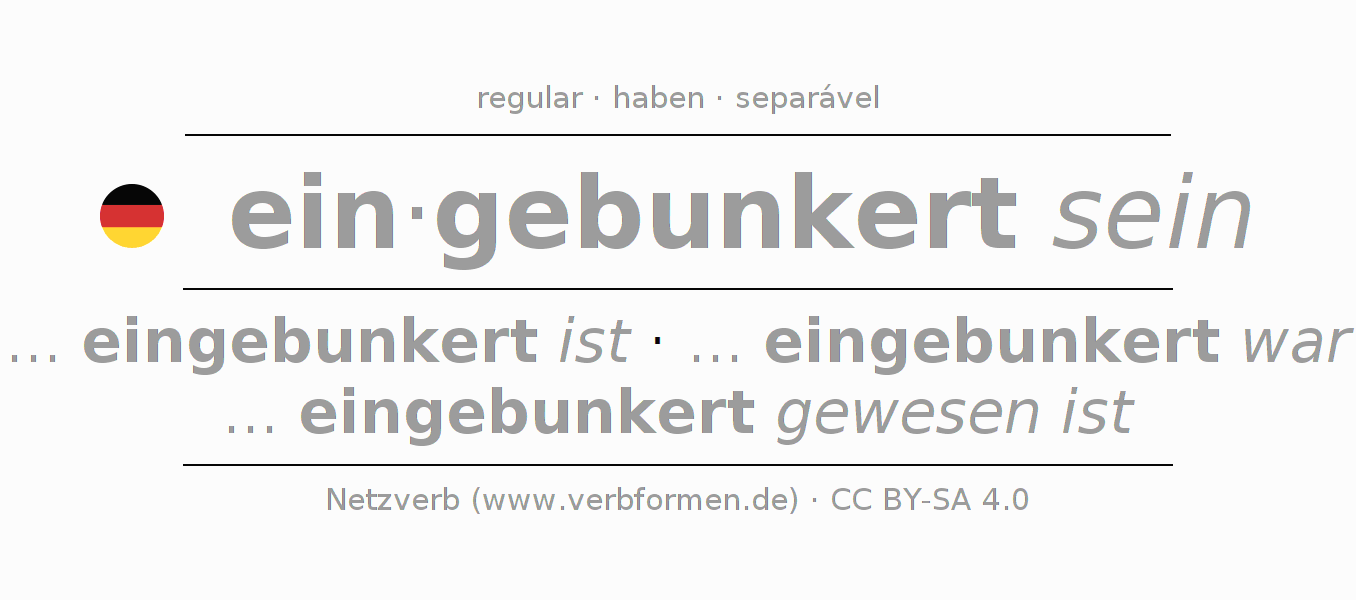 A conjugação do verbo einbunkern (armazenar, encarcerar) é regular. As formas mais comuns são ... eingebunkert ist, ... eingebunkert war e ... eingebunkert gewesen ist. O verbo auxilar para einbunkern é "haben".