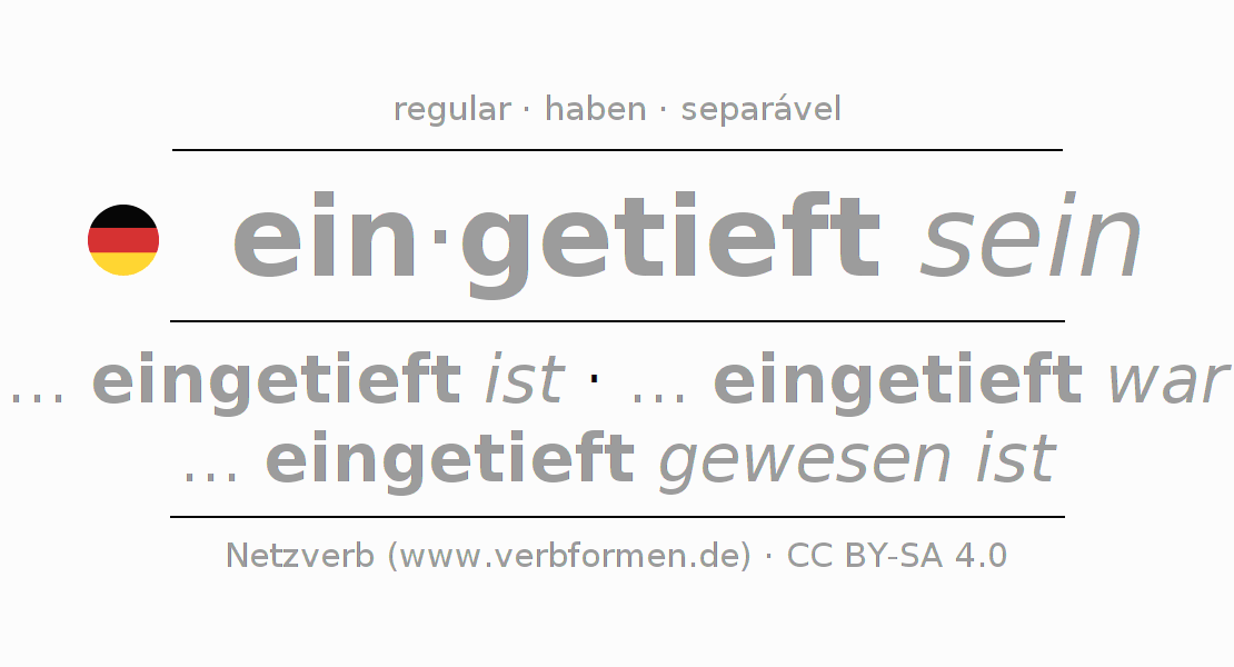O prefixo ein - de eintiefen é separável. A flexão ocorre em Estado passivo e é usada como Oração subordinada. Para melhor compreensão estão disponíveis incontáveis. Exemplos do verbo eintiefen . Para a prática e consolidação do estudo