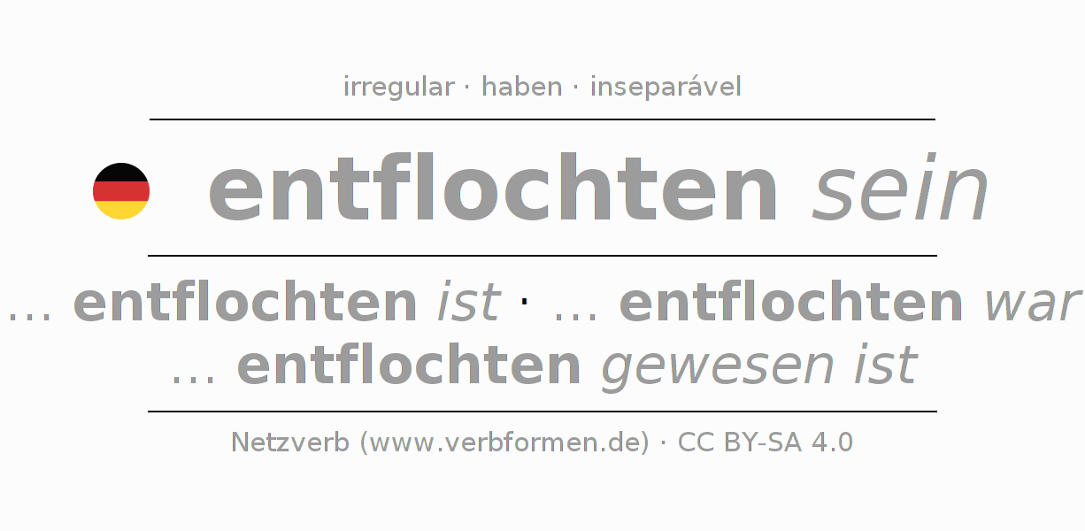 A conjugação do verbo entflechten (desentrelaçar, desfazer) é irregular. As formas mais comuns são ... entflochten ist, ... entflochten war e ... entflochten gewesen ist. A apofonia é feita com a vogal do radical e