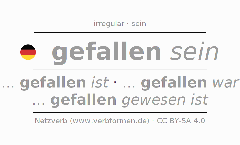 A conjugação do verbo fallen (cair, descer) é irregular. As formas mais comuns são ... gefallen ist, ... gefallen war e ... gefallen gewesen ist. A apofonia é feita com a vogal do radical a