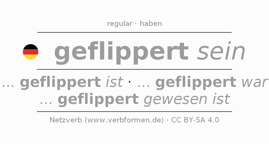A conjugação do verbo flippern (fliper) é regular. As formas mais comuns são ... geflippert ist, ... geflippert war e ... geflippert gewesen ist. O verbo auxilar para flippern é "haben".