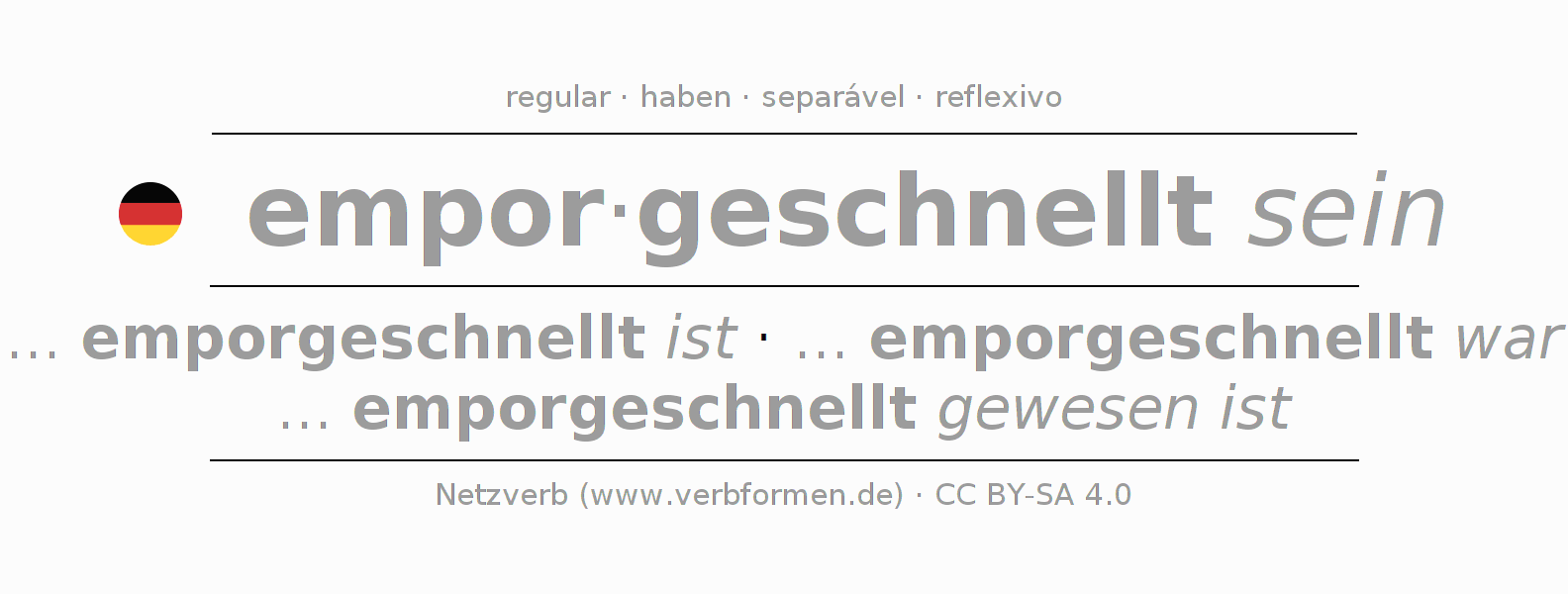 A conjugação do verbo emporschnellen (aumentar rapidamente, saltar) é regular. As formas mais comuns são ... emporgeschnellt ist, ... emporgeschnellt war e ... emporgeschnellt gewesen ist. O verbo auxilar para sich emporschnellen é "haben". No entanto, há formas verbais com o verbo auxiliar " sein".