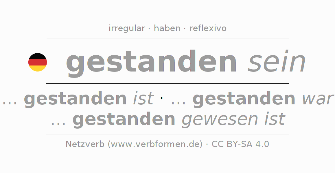 A conjugação do verbo stehen (estar, estar de pé) é irregular. As formas mais comuns são ... gestanden ist, ... gestanden war e ... gestanden gewesen ist. A apofonia é feita com a vogal do radical e