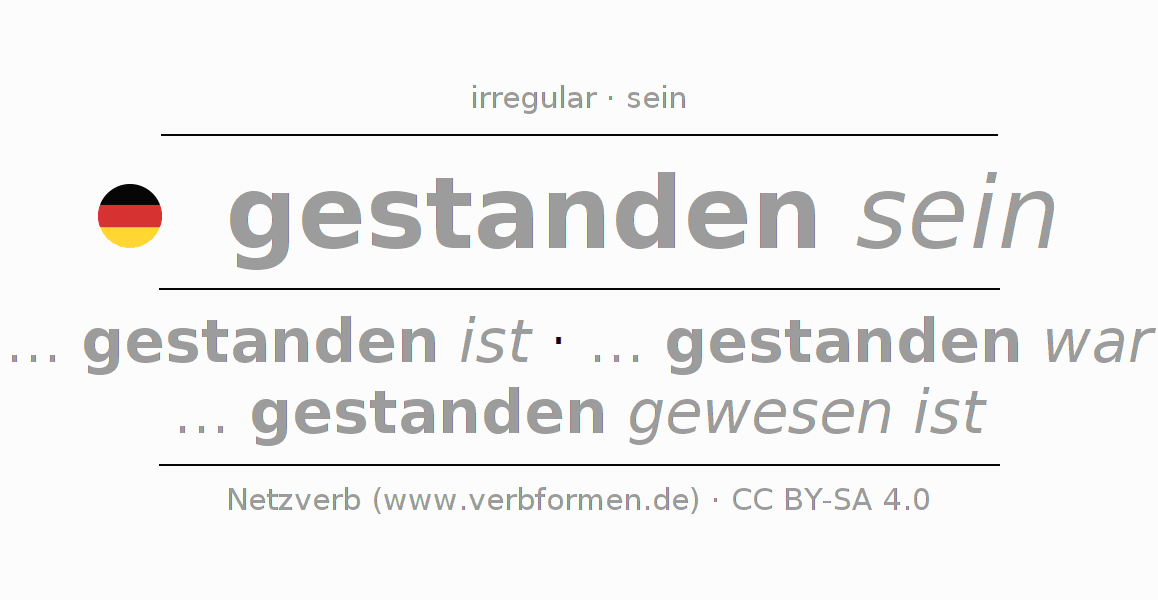 A conjugação do verbo stehen (estar, estar de pé) é irregular. As formas mais comuns são ... gestanden ist, ... gestanden war e ... gestanden gewesen ist. A apofonia é feita com a vogal do radical e
