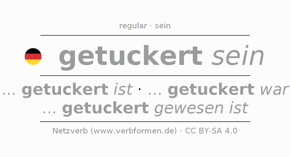 A conjugação do verbo getuckert sein é apresentada online assim como a Tabela de Verbo com todas as formas verbais no singular e no plural, e em todas as pessoas (1ª pessoa, 2ª pessoa, 3ª pessoa) A flexão do verbo getuckert sein é portanto, uma ajuda para os trabalhos de casa, testes, exames, aulas de alemão, para o estudo do alemão como língua estrangeira, como segunda língua e também na formação de adultos. Especialmente no aprendizado do alemão é importante a conjugação correta do verbo com as respectivamente formas flexionadas corretamente (... getuckert ist - ... getuckert war - ... getuckert gewesen ist). Mais informações podem ser encontradas no Wiktionary tuckern e no Duden tuckern.