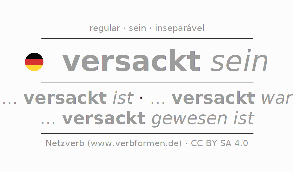 A conjugação do verbo versacken (afundar, afundar-se) é regular. As formas mais comuns são ... versackt ist, ... versackt war e ... versackt gewesen ist. O verbo auxilar para versacken é "sein".