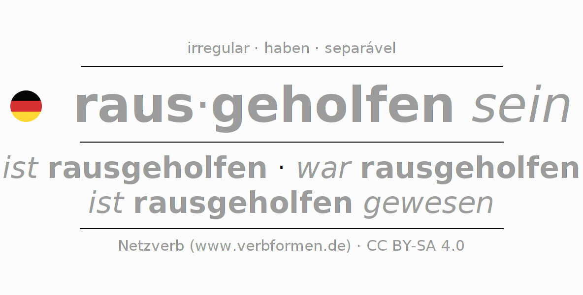 A conjugação do verbo raushelfen (ajudar, socorrer) é irregular. As formas mais comuns são ist rausgeholfen, war rausgeholfen e ist rausgeholfen gewesen. A apofonia é feita com a vogal do radical e