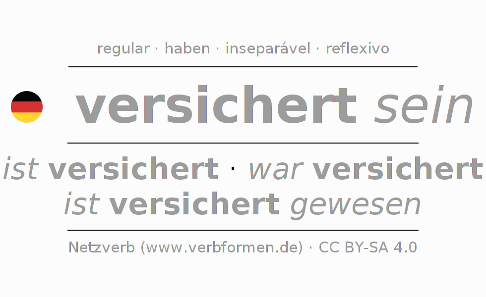 A conjugação do verbo versichern (assegurar, garantir) é regular. As formas mais comuns são ist versichert, war versichert e ist versichert gewesen. O verbo auxilar para sich versichern é "haben".