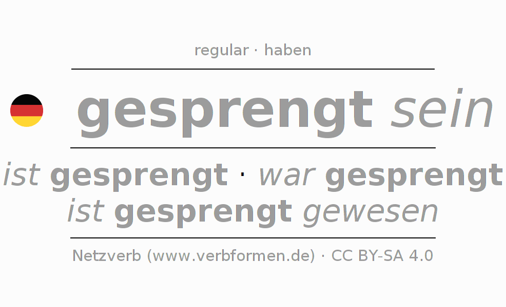A conjugação do verbo sprengen (explodir, abrir) é regular. As formas mais comuns são ist gesprengt, war gesprengt e ist gesprengt gewesen. O verbo auxilar para sprengen é "haben". No entanto, há formas verbais com o verbo auxiliar " sein".