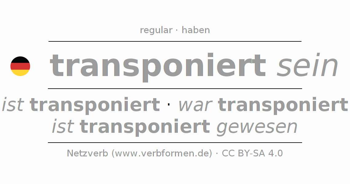 A conjugação do verbo transponieren (transpor) é regular. As formas mais comuns são ist transponiert, war transponiert e ist transponiert gewesen. O verbo auxilar para transponieren é "haben".
