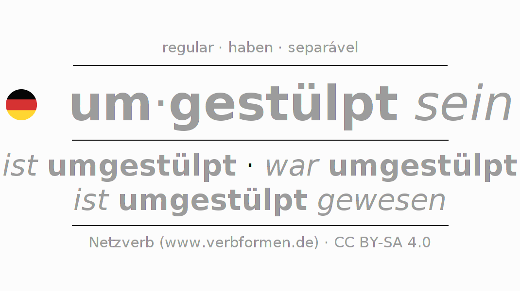 A conjugação do verbo umstülpen (inverter, virar) é regular. As formas mais comuns são ist umgestülpt, war umgestülpt e ist umgestülpt gewesen. O verbo auxilar para umstülpen é "haben".