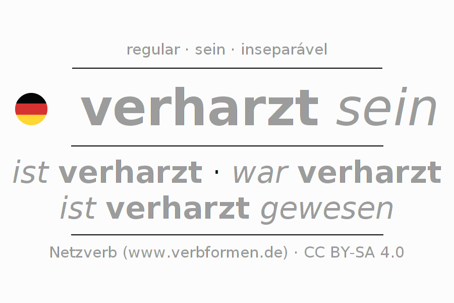 O prefixo ver- de verharzen é inseparável. A flexão ocorre em Estado passivo e é usada como Oração principal. Para melhor compreensão estão disponíveis incontáveis. Exemplos do verbo verharzen . Para a prática e consolidação do estudo