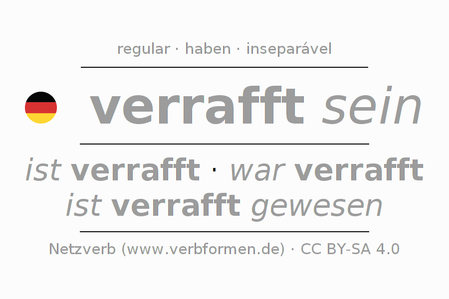 - Presente: sei (du) verrafft, seien wir verrafft, seid (ihr) verrafft, seien Sie verrafft