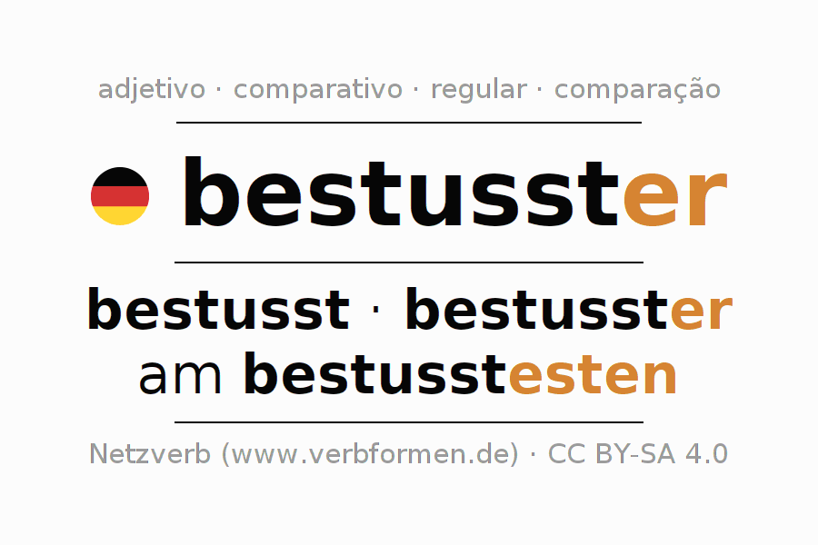 - Masculino: der bestusstere, des bestussteren, dem bestussteren, den bestussteren